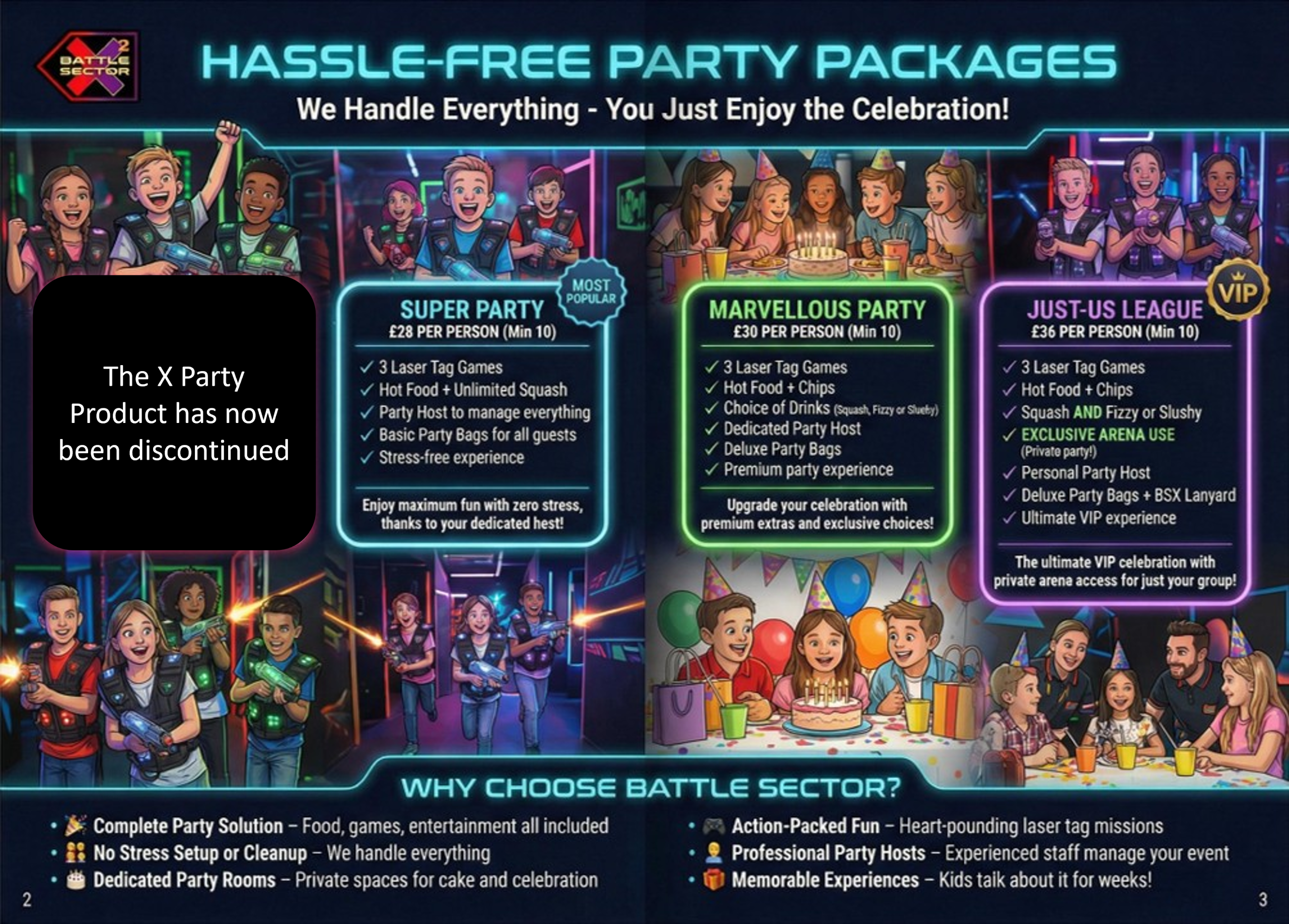 You could book our most popular party. The Marvellous includes any chips that might be needed, a Choice of drinks, and Deluxe Party bags.